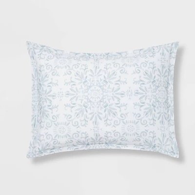 Breathe new life into your master suite or guest bedroom with the Atherton Medallion Comforter Set with Sheets from Threshold™. This comforter set includes a soft comforter decorated with an allover print of floral medallions in distressed light blue over a white background for a touch of soothing style. Also included is a coordinating pillow sham with an identical print, along with matching flat and fitted sheets and a pillowcase featuring a diagonal striped pattern of tiny medallions to create a chic, cohesive look. Made from a soft and lightweight fabric, this comforter bedding set brings you year-round comfort, while its machine-washable design makes for easy care.
